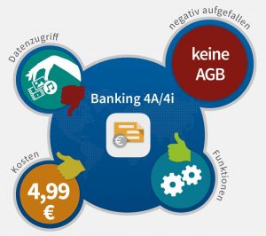 Was erwarten Sie von einer Banking-App? Wenn Sie lediglich ein Konto bei einem Kreditinstitut verwalten möchten, raten wir Ihnen zu der Starter-Version der App Banking 4A/4i. Diese App ist nicht nur kostenfrei, sondern punktet auch am meisten mit Funktionalität. Verwalten Sie mehrere Konten und benötigen Sie dabei die Trennung von privaten und geschäftlichen Konten, lohnt sich die Investition von 4,99 € in die App Banking 4A/4i.