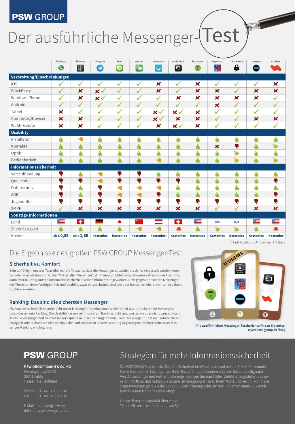 Auf dem Bild sind die Ergebnisse des Messenger-Tests zu erkennen.