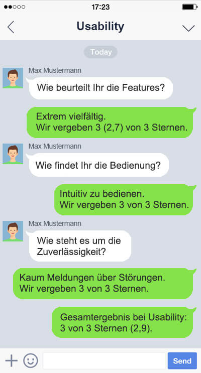 Um diese immense Funktionalität nutzen zu können, ist eine einfache Bedienung unabdingbar. Und das gelingt bei der Messaging-App sehr leicht: das Design ist selbsterklärend, die Benutzung intuitiv möglich. Trotz der umfangreichen Funktionalität ist es den Entwicklern gut gelungen, das Bedienen der App einfach und übersichtlich zu gestalten.