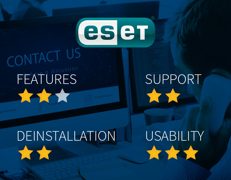 Support-technisch ist ESET sehr gut aufgestellt: Online finden Sie bereits umfangreiche Unterstützung und wenn diese nicht genügt, haben Sie auch Ansprechpartner per Mail oder Telefon. Anwenderfreundlich für Laien und Fortgeschrittene gleichermaßen bietet ESET eine gute Usability. Last but not least überzeugt eine einfache Deinstallation.