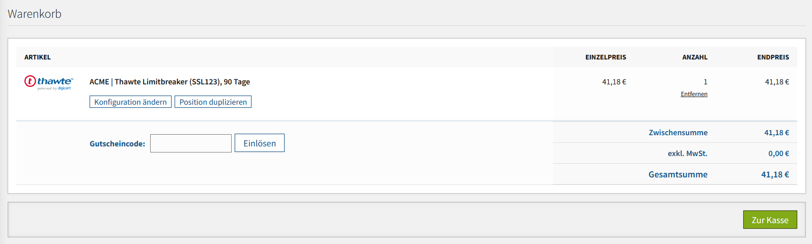 Um den Kauf abzuschließen, klicken Sie auf „Zur Kasse“.