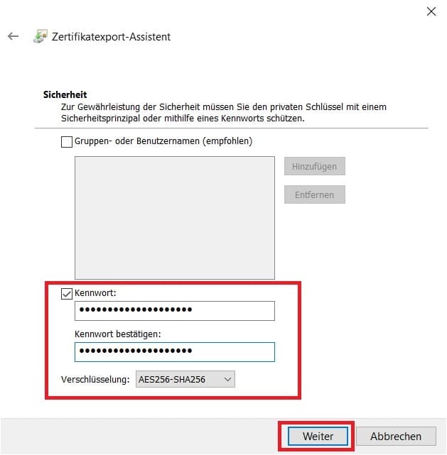 7. Im nächsten Schritt muss ein Kennwort vergeben werden. Dieses kann ganz frei gewählt werden und hat keine Voraussetzungen.