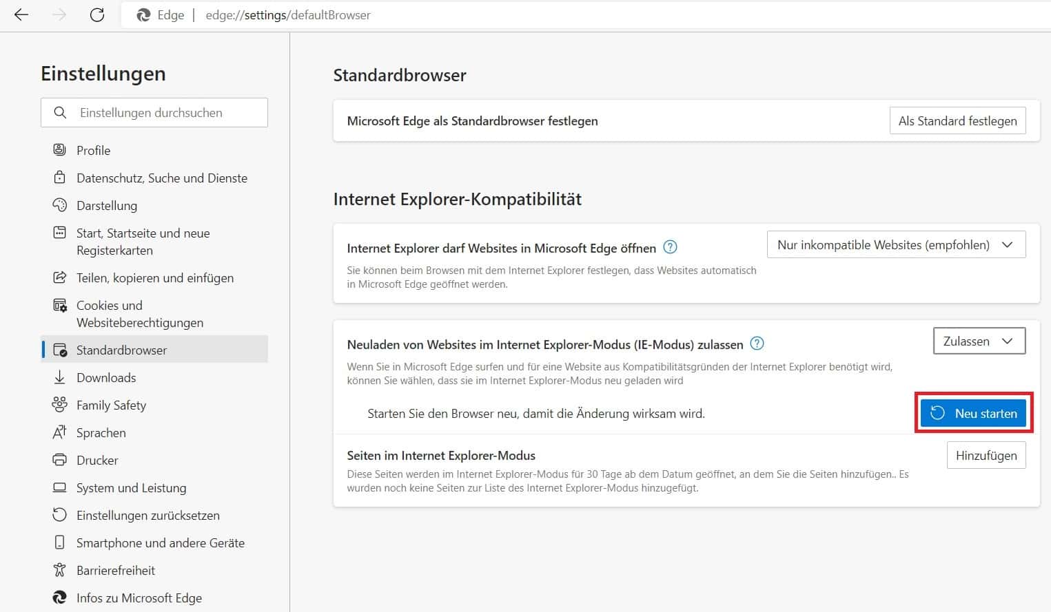 3. Nach Umstellung, Browser neu starten