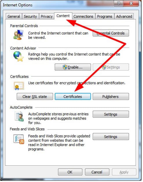 - Im Tab Inhalte öffnen Sie den Zertifikatsbereich: