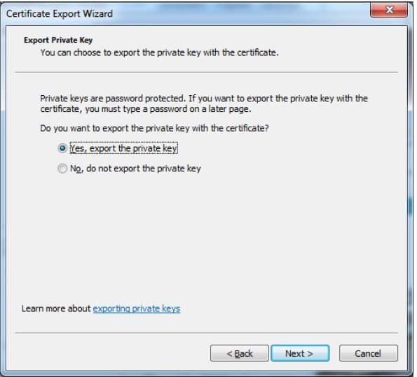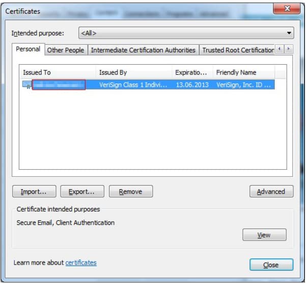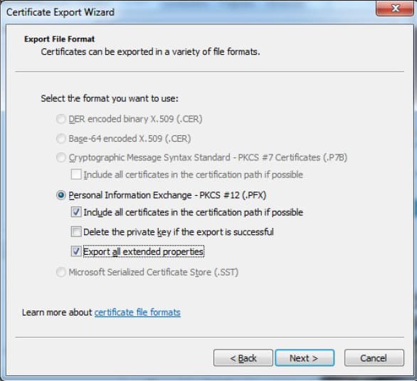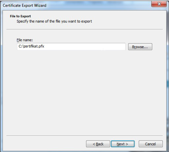 Möchten Sie privaten Schlüssel und Ihr Zertifikat als PKCS12 Datei exportieren, um sie in einem anderen System zu importieren, gehen Sie bitte wie folgt vor:
