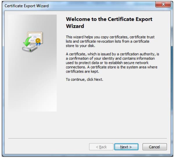 - Wählen Sie das gewünschte Zertifikat aus und klicken Sie Export: