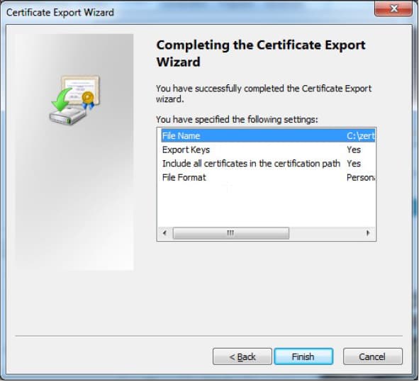 - Der erfolgreiche Export des Zertifikats wird Ihnen bestätigt: